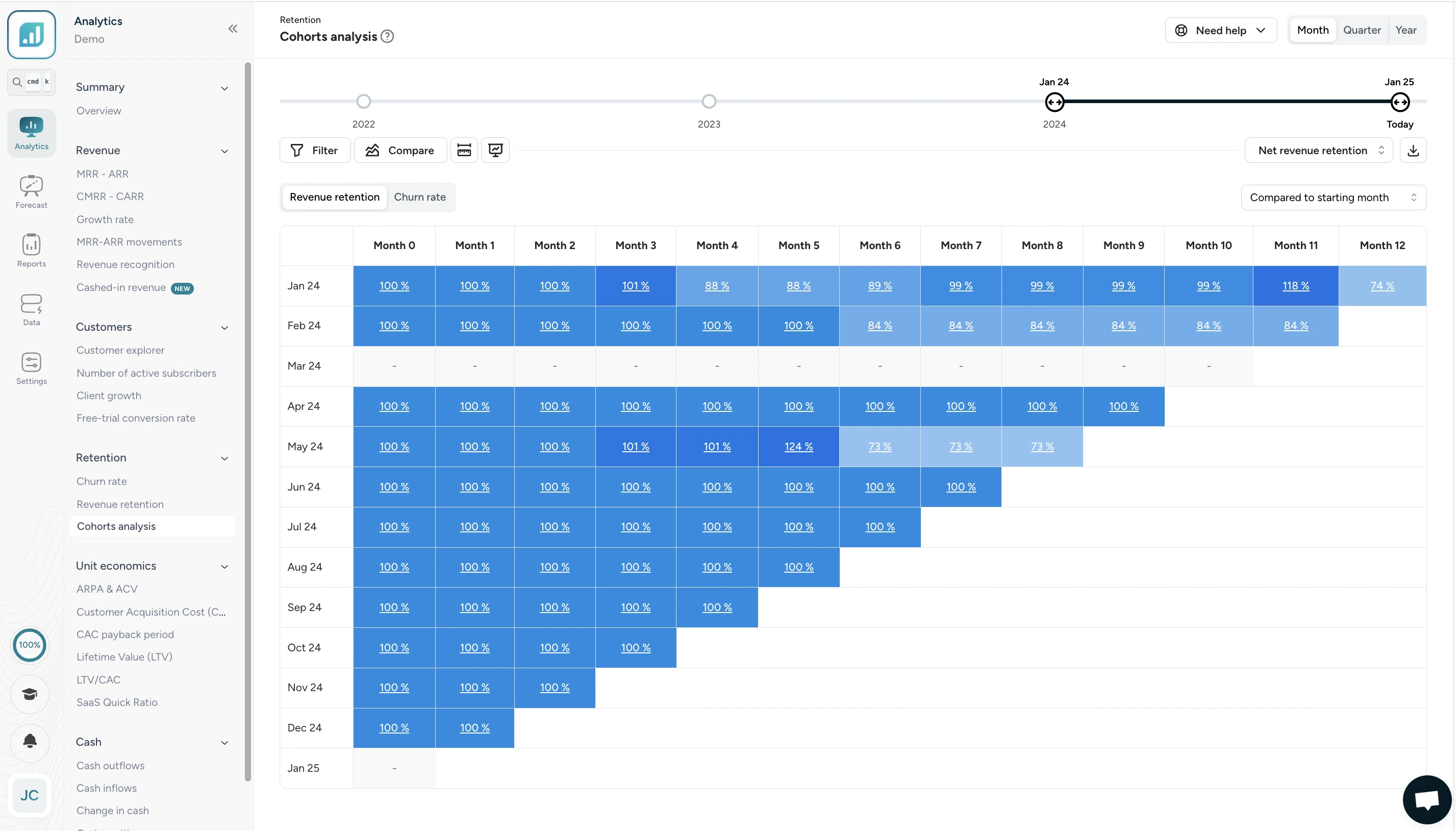 ✅ Revenue: detailed ARR/MRR breakdown, cohort analysis, detection of billing errors or omissions, revenue recognition and deferred revenue (PCA)